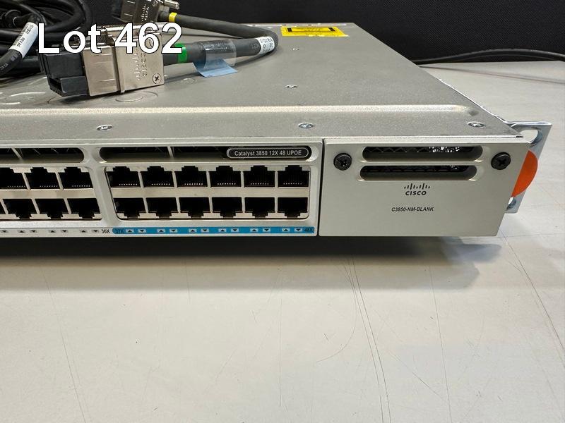 CISCO CATALYST 3850 12X 48 UPOE 48-PORT SWITCH, WS-C3850-12X48U-L V02 1 x PWR-C1-1100WAC PSU WITH NOTCH POWER CABLE & POWER STACK CABLE S/N:FOC2135U0XF