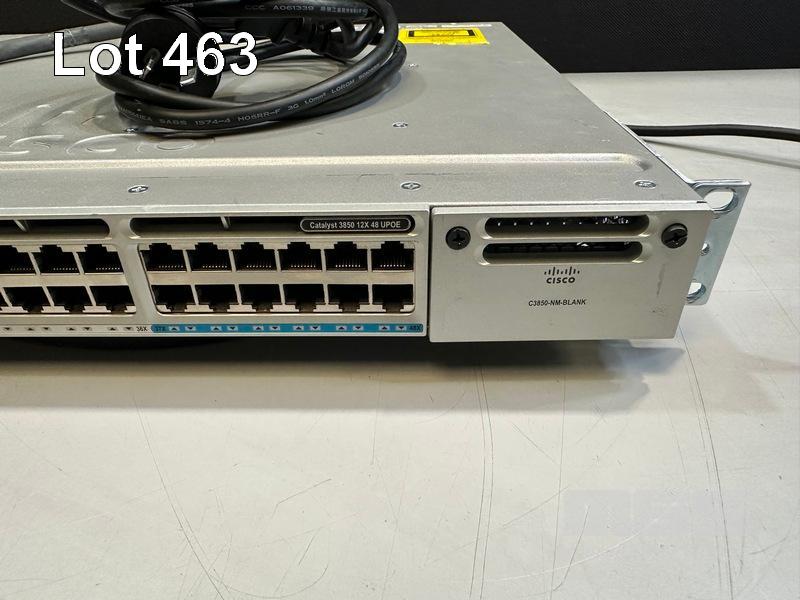 CISCO CATALYST 3850 12X 48 UPOE 48-PORT SWITCH, WS-C3850-12X48U-L V02 1 x PWR-C1-1100WAC PSU WITH NOTCH POWER CABLE & POWER STACK CABLE S/N:FOC2135U14E