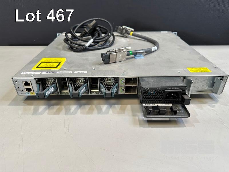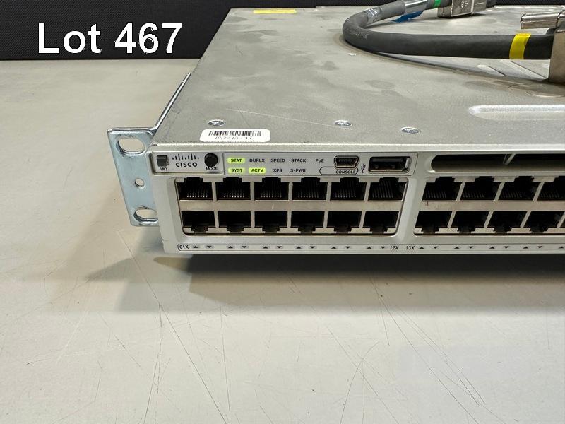 CISCO CATALYST 3850 12X 48 UPOE 48-PORT SWITCH, WS-C3850-12X48U-L V02 1 x PWR-C1-1100WAC PSU WITH NOTCH POWER CABLE & POWER STACK CABLE S/N:FOC2135U0WP