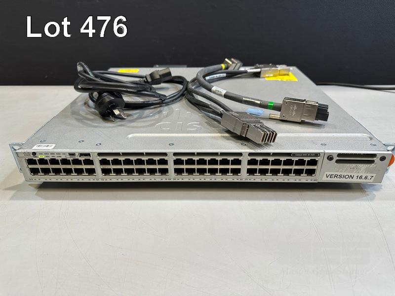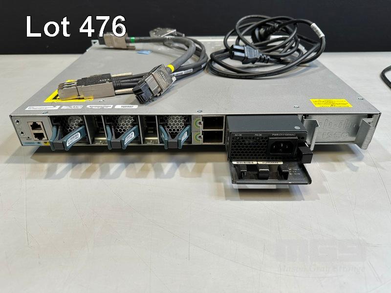 CISCO CATALYST 3850 48 PoE+ 48-PORT SWITCH, WS-C3850-48F-L V07 1 x PWR-C1-1100WAC PSU WITH NOTCH POWER CABLE & STACK CABLES S/N:FCW2138C0NE