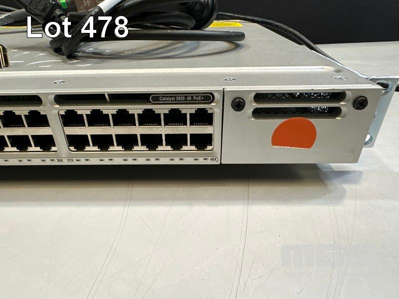 CISCO CATALYST 3850 48 PoE+ 48-PORT SWITCH, WS-C3850-48F-L V07 1 x PWR-C1-1100WAC PSU WITH NOTCH POWER CABLE & STACK CABLES S/N:FOC2152U07Z