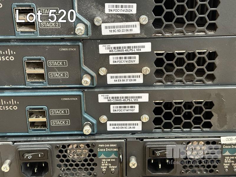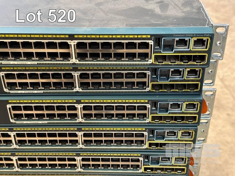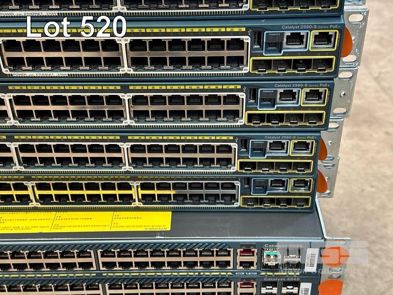 3 x CISCO CATALYST 2960-S SERIES PoE+ 24-PORT SWITCHES, WS-C2960S-24PS-L 3 x CISCO CATALYST 2960-S SERIES PoE+ 48-PORT SWITCHES, WS-C2960S-48LPS-L 5 x CISCO CATALYST 4948 48-PORT SWITCHES, WS-C4948 S (NO CABLES) S/N:FOC1740Z1NF, FOC1741Y0CN, FOC1741Y09Y, FOC1741Z0ZK, FOC1741Z0UY, FOC1714Y1G7, FOX1220GJP8, FOX1212G12M, FOX1222GLH8, FOX1205GK6H, FOX1211GE6M