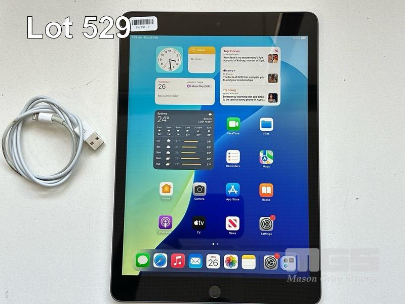 APPLE iPAD 9TH GEN, 256GB, Wi-Fi, SPACE GREY, MODEL MK2N3X/A, A2602 WITH CABLE (NO CHARGER) S/N:Y3J2MYNVT6