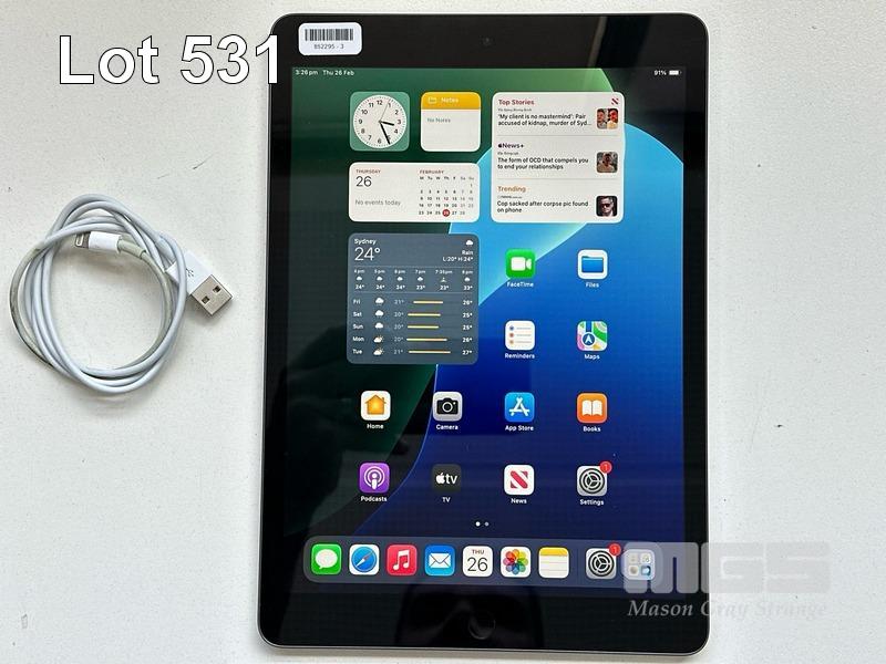 APPLE iPAD 9TH GEN, 256GB, Wi-Fi, SPACE GREY, MODEL MK2N3X/A, A2602 WITH CABLE (NO CHARGER) S/N:LJ9Y4NFQNR