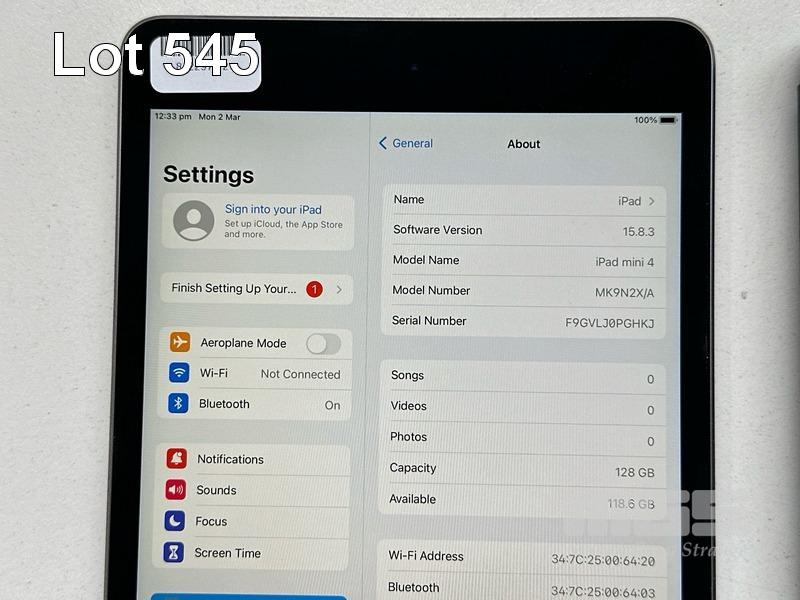 APPLE iPAD MINI 4TH GEN, 128GB, Wi-Fi, SPACE GREY, MODEL MK9N2X/A, A1538 WITH CABLE & CHARGER S/N:F9GVLJ0PGHKJ