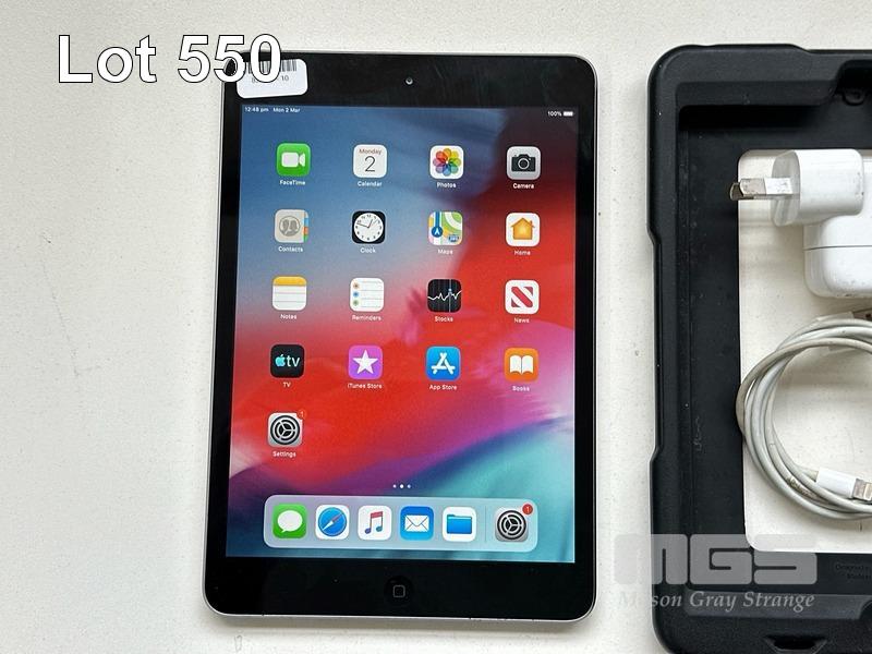 APPLE iPAD MINI 2, 32GB, Wi-Fi, SPACE GREY, MODEL ME277X/A, A1489 WITH CABLE & CHARGER S/N:DLXNX9YMFCM6