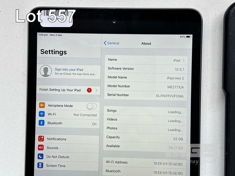 APPLE iPAD MINI 2, 32GB, Wi-Fi, SPACE GREY, MODEL ME277X/A, A1489 WITH CABLE & CHARGER (NOTE: MINOR SCRATCHES ON SCREEN) S/N:DLXNX9VUFCM6