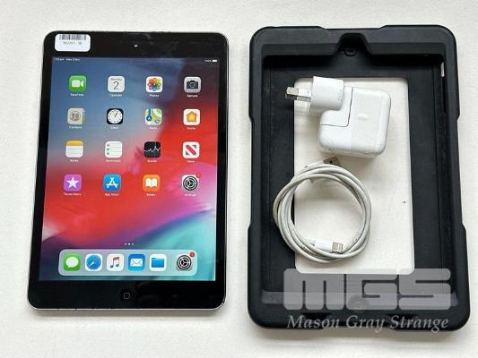 APPLE iPAD MINI 2, 32GB, Wi-Fi, SPACE GREY, MODEL ME277X/A, A1489 WITH CABLE & CHARGER (NOTE: MINOR SCRATCHES ON SCREEN) S/N:DLXNX9KTFCM6