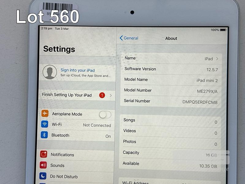 APPLE iPAD MINI 2, 16GB, Wi-Fi, SILVER, MODEL ME279X/A, A1489 (NO CABLE, NO CHARGER) S/N:DMPQ5ERDFCM8