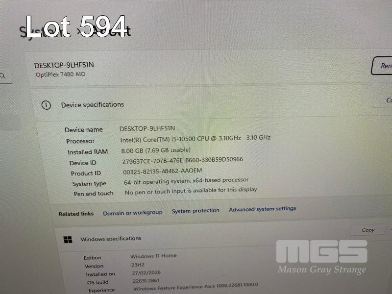 ALL-IN-ONE PC, DELL OPTIPLEX 7480, CORE i5 10500 (10TH GEN) @ 3.1GHz, 8GB DDR4 RAM, 512GB NVMe M.2 SSD, INBUILT 23.8" FHD WIDESCREEN (1920x1080), INTEL HD VIDEO, WEBCAM, 5 x USB, 1 x USB-C, Wi-Fi, BLUETOOTH, WINDOWS 11 HOME INSTALLED, KEYBOARD & MOUSE (NOTE: MINOR SCRATCH ON SCREEN) S/N:6GMWVD3