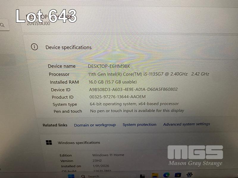 LAPTOP, LENOVO THINKPAD L13 Gen2, TYPE 20VJ, CORE i5 1135G7 (11TH GEN) @ 2.4GHz, 16GB DDR4 RAM, 512GB NVMe M.2 SSD, 13.3" WIDESCREEN (1920x1080), INTEL IRIS Xe GRAPHICS, Wi-Fi, BLUETOOTH, WINDOWS 11 HOME INSTALLED (NO USB-C POWER SUPPLY) (NOTE: MISSING 1 x KEY, CASE MISSING "THINKPAD" LOGO, MINOR MARKS & SCRATCHES ON SCREEN) S/N:R914NMAL