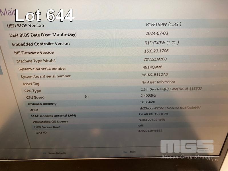 LAPTOP, LENOVO THINKPAD L13 Gen2, TYPE 20VJ, CORE i5 1135G7 (11TH GEN) @ 2.4GHz, 16GB DDR4 RAM, 512GB NVMe M.2 SSD, 13.3" WIDESCREEN (1920x1080), INTEL IRIS Xe GRAPHICS, Wi-Fi, BLUETOOTH, WINDOWS 11 PRO EDUCATION INSTALLED (NO USB-C POWER SUPPLY) (NOTE: MISSING 2 x KEYS, DAMAGE TO CASING, CASE MISSING "THINKPAD" LOGO, SPOTS ON SCREEN) S/N:R914Q9M6