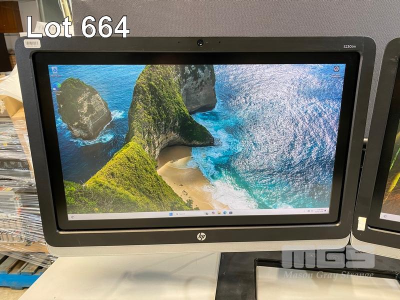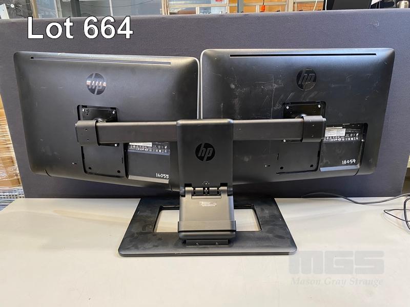 2 x MONITORS, HP ELITEDISPLAY S230tm 23" IPS TOUCHSCREEN, DISPLAYPORT, DVI (WITH CABLES) ON DUAL MONITOR STAND S/N:CNC6010017, CNC601001C