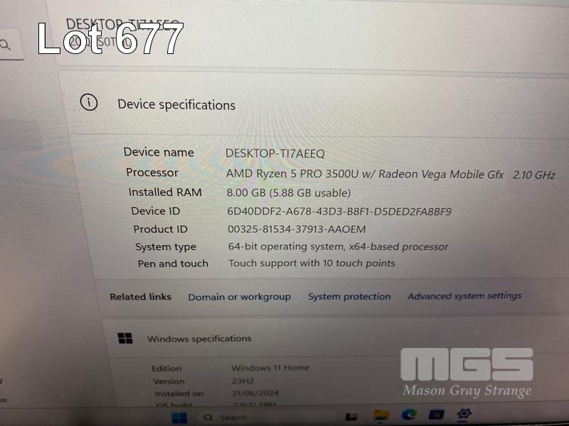 LAPTOP, LENOVO THINKPAD T495s, TYPE 20QK, AMD RYZEN 5 PRO 3500U @ 2.1GHz, 8GB DDR4 RAM, 256GB NVMe M.2 SSD, 14" TOUCHSCREEN (1920x1080), Wi-Fi, BLUETOOTH, WINDOWS 11 HOME INSTALLED (NO USB-C POWER SUPPLY) (NOTE: MISSING 1 x KEY, MARKS ON SCREEN) S/N:PC1AZVF7
