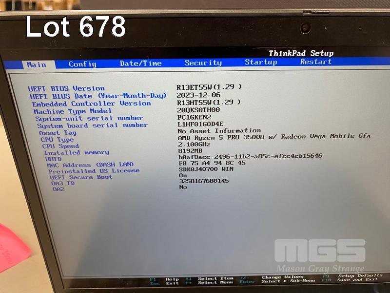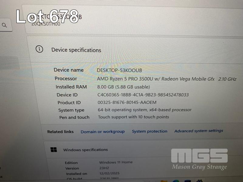 LAPTOP, LENOVO THINKPAD T495s, TYPE 20QK, AMD RYZEN 5 PRO 3500U @ 2.1GHz, 8GB DDR4 RAM, 256GB NVMe M.2 SSD, 14" TOUCHSCREEN (1920x1080), Wi-Fi, BLUETOOTH, WINDOWS 11 HOME INSTALLED (NO USB-C POWER SUPPLY) (NOTE: "ENTER" KEY STICKY, MARKS ON SCREEN) S/N:PC1GKEN2