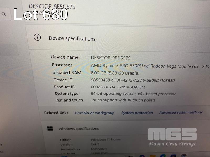 LAPTOP, LENOVO THINKPAD T495s, TYPE 20QK, AMD RYZEN 5 PRO 3500U @ 2.1GHz, 8GB DDR4 RAM, 256GB NVMe M.2 SSD, 14" TOUCHSCREEN (1920x1080), Wi-Fi, BLUETOOTH, WINDOWS 11 HOME INSTALLED (NO USB-C POWER SUPPLY) (NOTE: MARKS & SCRATCHES ON SCREEN) S/N:PC1AZVG1