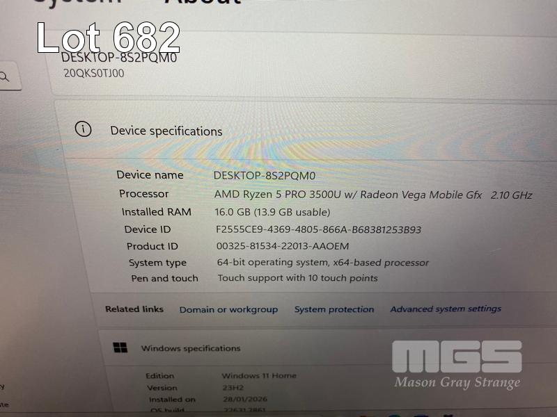 LAPTOP, LENOVO THINKPAD T495s, TYPE 20QK, AMD RYZEN 5 PRO 3500U @ 2.1GHz, 16GB DDR4 RAM, 256GB NVMe M.2 SSD, 14" TOUCHSCREEN (1920x1080), Wi-Fi, BLUETOOTH, WINDOWS 11 HOME INSTALLED (NO USB-C POWER SUPPLY) (NOTE: TOUCHPAD BUTTONS STICKY, MARKS ON SCREEN) S/N:PC1AY2RV