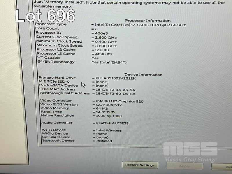 LAPTOP, DELL LATITUDE E7470, CORE i7 6600U (6TH GEN) @ 2.6GHz, 8GB DDR4 RAM, 512GB M.2 SSD, 14" WIDESCREEN (1920x1080), INTEL HD GRAPHICS 520, Wi-Fi, BLUETOOTH, WINDOWS 10 HOME INSTALLED & POWER SUPPLY S/N:BZDDPF2
