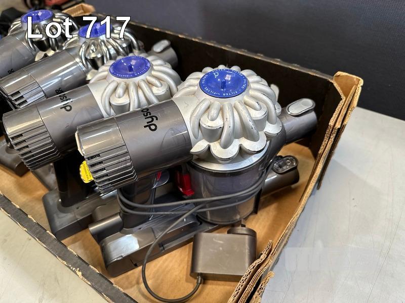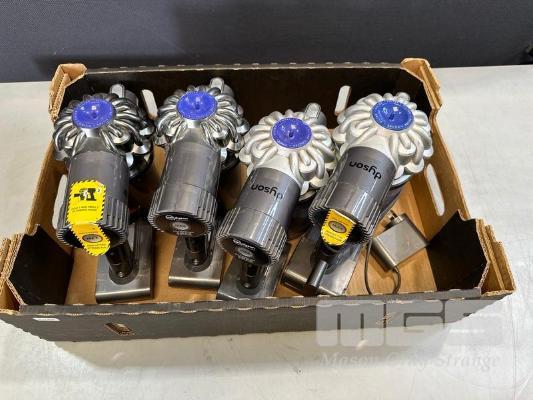 4 x DYSON DC HAND HELD VACUUMS, 1 x CHARGER (NOTE: NO ACCESSORIES)