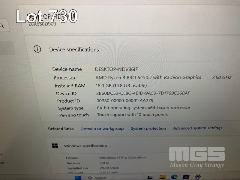 LAPTOP, LENOVO THINKPAD L14 Gen2, TYPE 20X6, AMD RYZEN 3 PRO 5450U @ 2.6GHz, 16GB DDR4 RAM, 256GB NVMe M.2 SSD, 14" TOUCHSCREEN (1920x1080), Wi-Fi, BLUETOOTH, WINDOWS 11 PRO EDUCATION INSTALLED (NO USB-C POWER SUPPLY) (NOTE: CRACK LINE & MINOR DENT TO CASING, MARKS ON SCREEN) S/N:PF3KCQLN