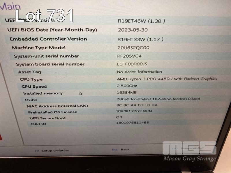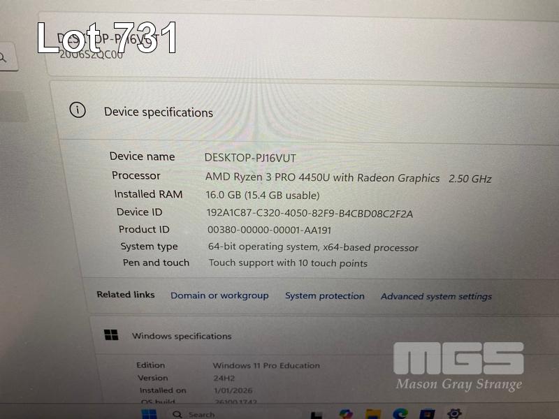LAPTOP, LENOVO THINKPAD L14, TYPE 20U6, AMD RYZEN 3 PRO 4450U @ 2.5GHz, 16GB DDR4 RAM, 256GB NVMe M.2 SSD, 14" TOUCHSCREEN (1920x1080), Wi-Fi, BLUETOOTH, WINDOWS 11 PRO EDUCATION INSTALLED (NO USB-C POWER SUPPLY) (NOTE: MINOR DENTS TO CASING, CASE MISSING "THINKPAD" LOGO, MARKS & SPOT ON SCREEN) S/N:PF205VC4