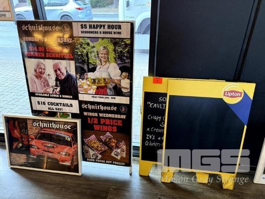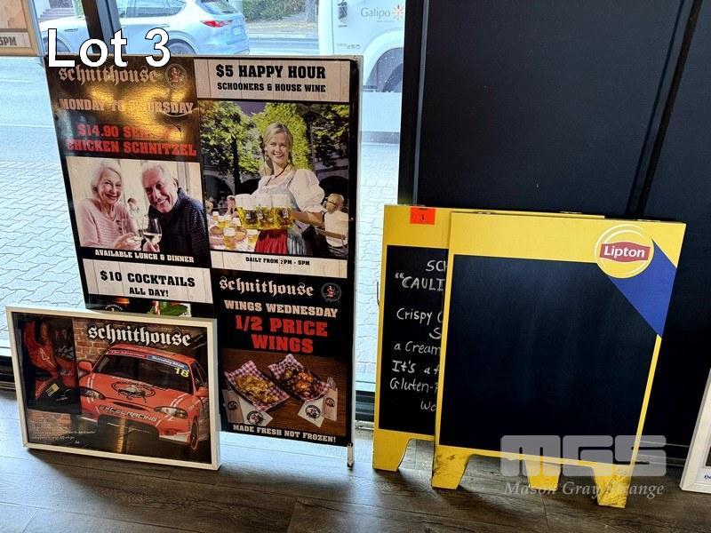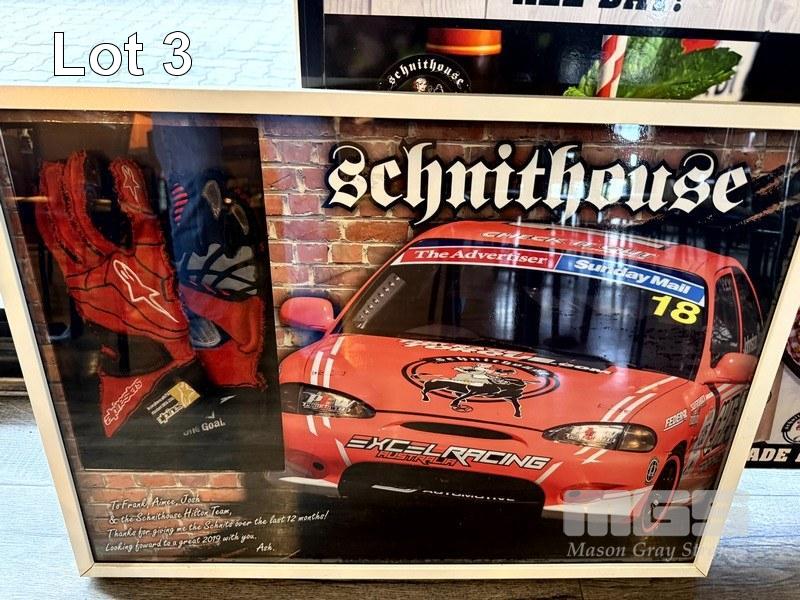 2 x A-FRAME SIGN BOARDS & SCHNITHOUSE FRAMED RACING PHOTO WITH GLOVES