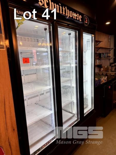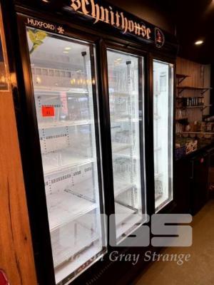 HUXFORD 3 GLASS DOOR UPRIGHT DRINKS DISPLAY REFRIGERATOR 2200 x 1645 x 740mm WITH INBUILT REFRIGERATION UNIT, 240V, SINGLE PHASE