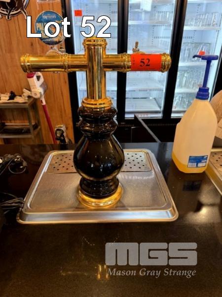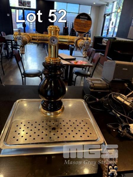 DECORATIVE CERAMIC & BRASS 3 TAP BEER FONT WITH STAINLESS STEEL DRIP TRAY