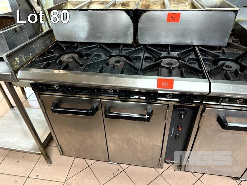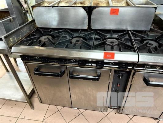 TURBO FAN STAINLESS STEEL COMMERCIAL KITCHEN GAS COOKING RANGE, 6 x BURNER & TWIN OVEN 900 x 800mm