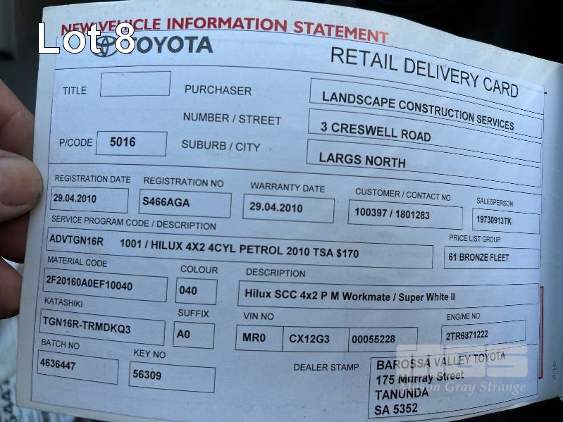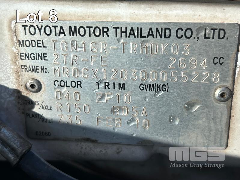 2010 TOYOTA WORK MATE TGN16R 150 SER SINGEL CAB TRAY TOP