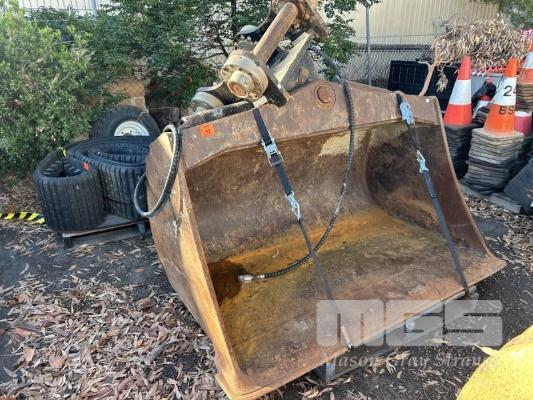 EXCAVATOR BUCKET, RHINO/KERFAH TILT MUD BUCKET MOD: RBSOTB 2000 x 1000mm (H) FITTED WITH HYDRAULIC TILT & QUICK HITCH 90mm DIAMETER PIN x 420mm (L)