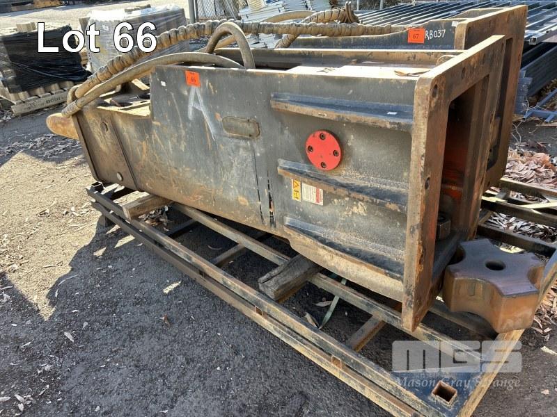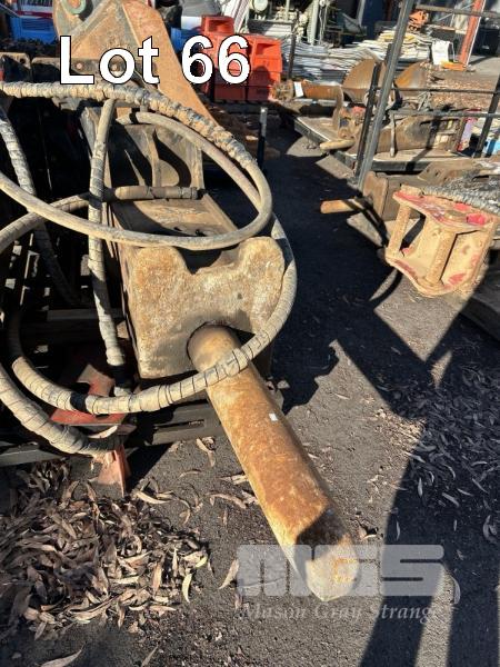ROCK BREAKER ATTACHMENT SUIT EXCAVATOR, BRAND UNKNOWN 1940mm (L) BOLT FACE SIZE FOR HITCH, 640 x 765mm FITTED WITH 140mm DIAMETER BIT ALL FAULTS HAS SNAPPED BOLTS