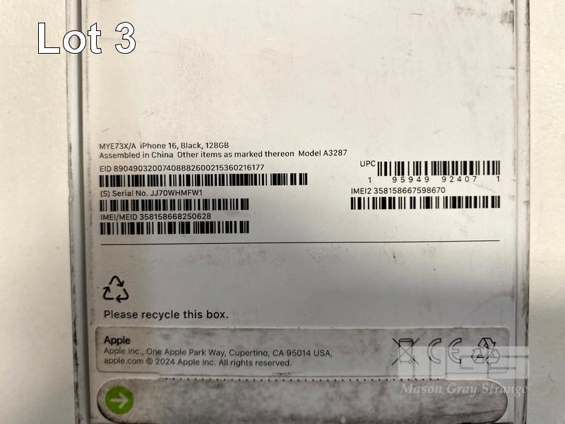 SMARTPHONE, APPLE iPHONE 16 5G 128GB BLACK, MYE73X/A (RRP $1,247) (BOXED) (SUBJECT TO INSURANCE CLAIM) S/N:SJJ70WHMFW1