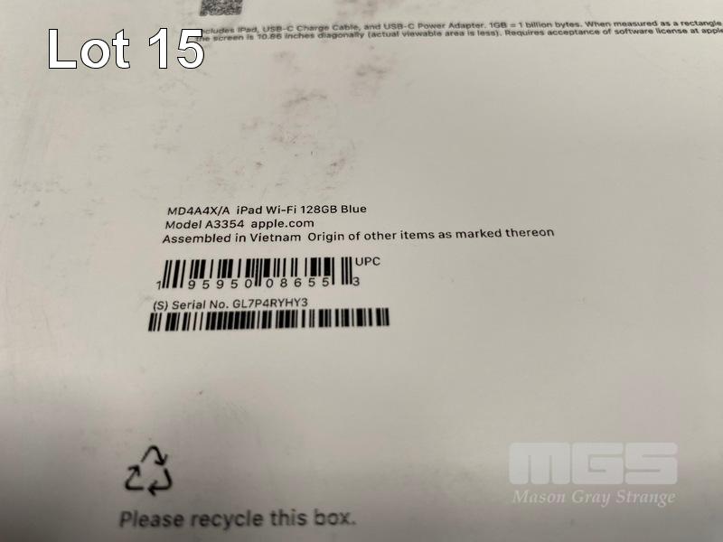 TABLET, APPLE iPAD 11 INCH A16 (2025) WIFI 128GB BLUE, MD4A4X/A (RRP $599) (BOXED) (SUBJECT TO INSURANCE CLAIM) S/N:SGL7P4RYHY3