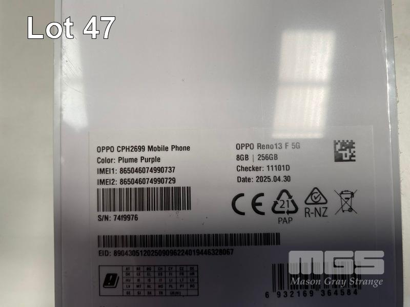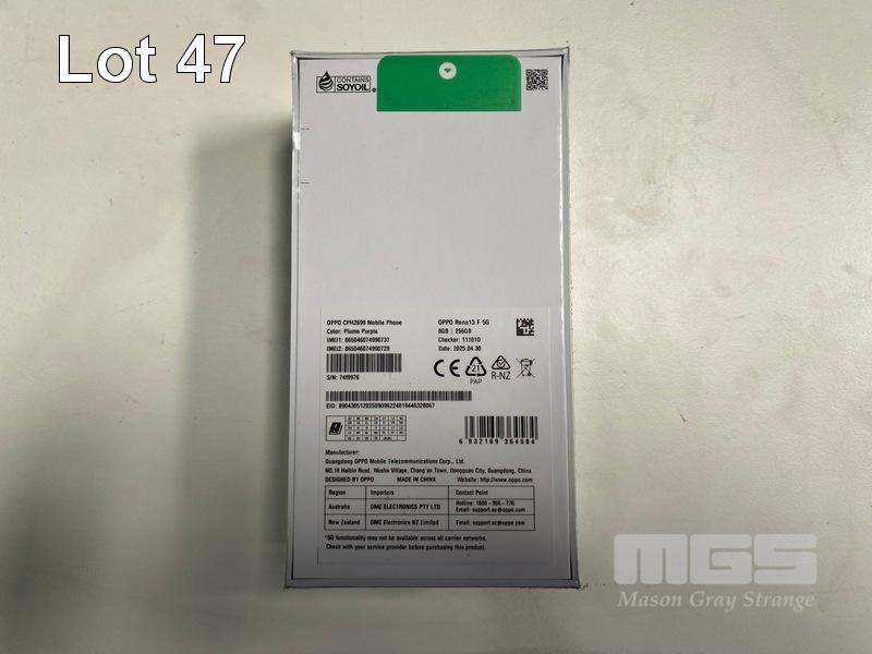 SMARTPHONE, OPPO RENO13 F 5G 256GB PLUME PURPLE, CPH2699 (RRP $599) (BOXED) (SUBJECT TO INSURANCE CLAIM) S/N:74F9976