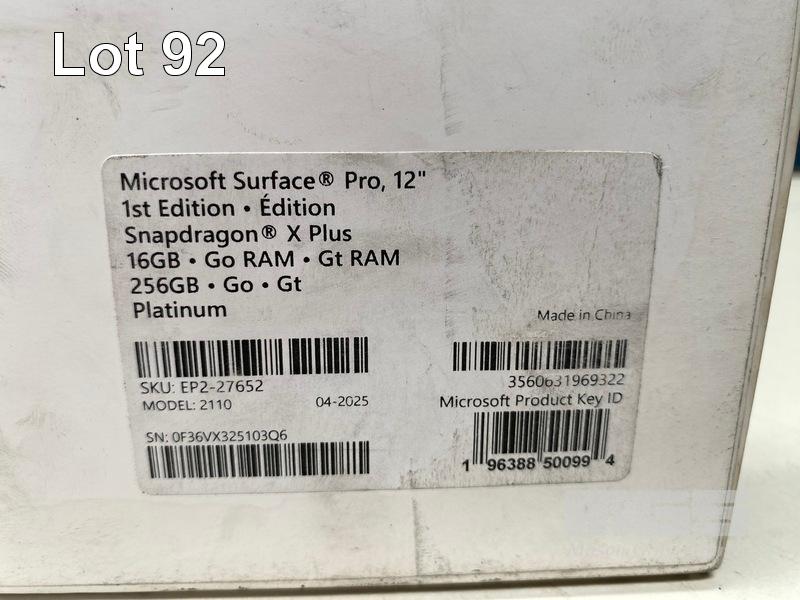 TABLET PC, MICROSOFT SURFACE PRO 1ST EDITION 12 INCH, PLATINUM, SNAPDRAGON X PLUS, 16GB RAM, 256GB SSD, MODEL 2110