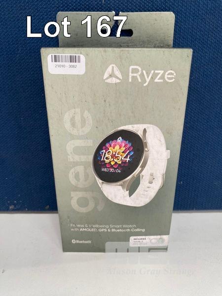 SMART WATCH, RYZE GENE FITNESS & WELLBEING, WHITE/MINT, RZ-WAFA (RRP $248) (BOXED) (SUBJECT TO INSURANCE CLAIM)