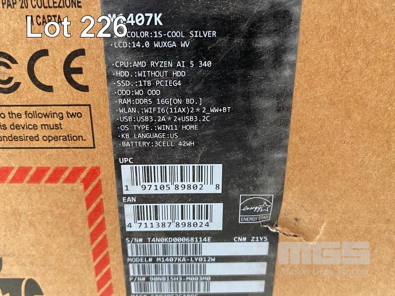 LAPTOP, ASUS VIVOBOOK 14 M1407KA-LY012W NG+, AMD RYZEN AI 5 340, 16GB RAM, 1TB SSD, 14 INCH, WINDOWS 11 HOME (RRP $1,599) (BOXED) (SUBJECT TO INSURANCE CLAIM) S/N:T4N0KD00068114E