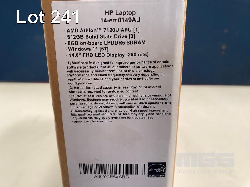 LAPTOP, HP 14-EM0149AU NAT-SILVER NBK, AMD ATHLON 7120U, 8GB RAM, 512GB SSD, 14 INCH, WINDOWS 11 HOME (RRP $849) (BOXED) (SUBJECT TO INSURANCE CLAIM) S/N:5CG5091CXV