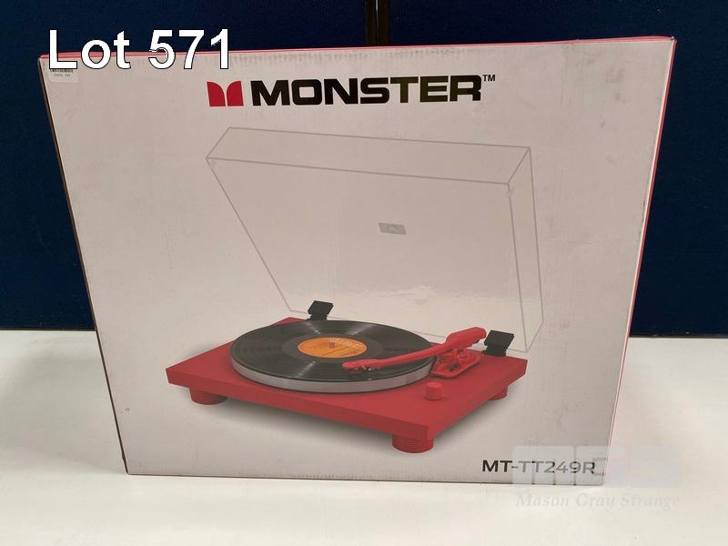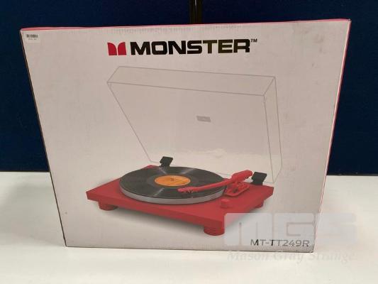 TURNTABLE, MONSTER MT-TT249R 3-SPEED VINYL, RED (RRP $199) (BOXED) (SUBJECT TO INSURANCE CLAIM)