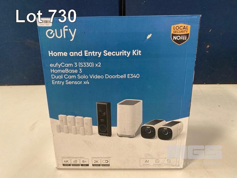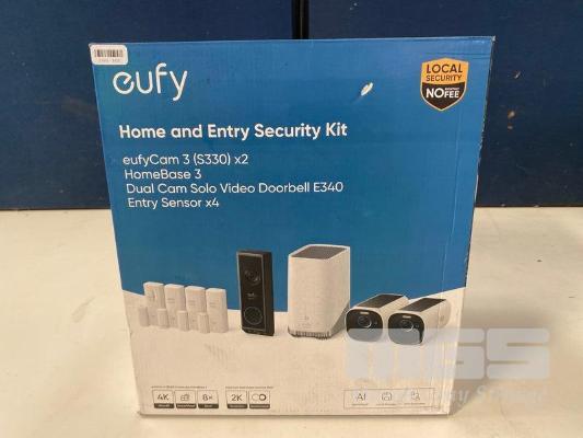 HOME & ENTRY SECURITY KIT, EUFY EUFYCAM3 (S330) X2, HOMEBASE 3, DUAL CAM SOLO VIDEO DOORBELL E340, ENTRY SENSORX4 (RRP $1,448) (BOXED) (SUBJECT TO INSURANCE CLAIM)