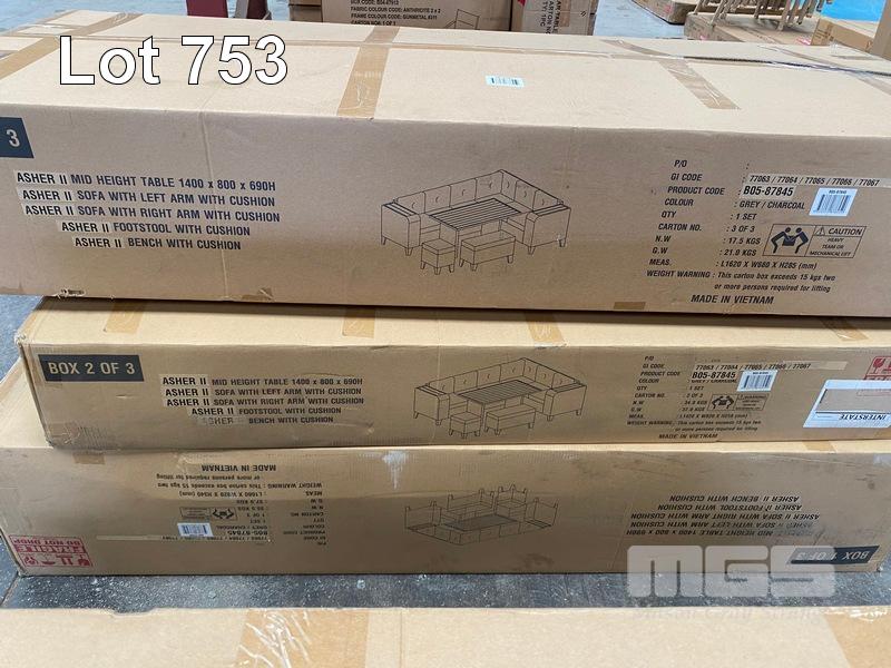 ASHER II 5-PIECE OUTDOOR CORNER LOUNGE/DINING SETTING, POWDER COATED STEEL, RESIN WICKER FRAME, TABLE 145 x 80cm, B05-87845