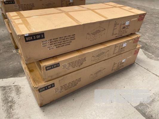 ASHER II 5-PIECE OUTDOOR CORNER LOUNGE/DINING SETTING, POWDER COATED STEEL, RESIN WICKER FRAME, TABLE 145 x 80cm, B05-87845 (RRP $2,199) (BOXED) (SUBJECT TO INSURANCE CLAIM)