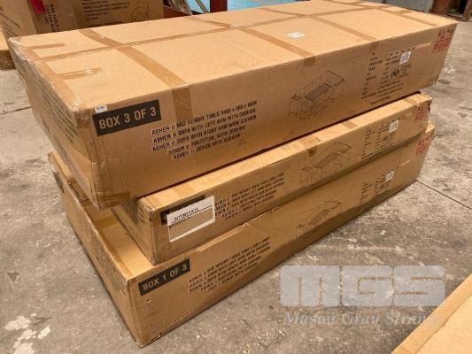 ASHER II 5-PIECE OUTDOOR CORNER LOUNGE/DINING SETTING, POWDER COATED STEEL, RESIN WICKER FRAME, TABLE 145 x 80cm, B05-87845 (RRP $2,199) (BOXED) (SUBJECT TO INSURANCE CLAIM)