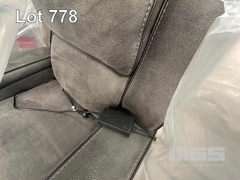 BURLINGTON FABRIC POWERED RECLINER ARMCHAIR, HEAT & AIR MASSAGE, HUNTER CHARCOAL (RRP $1,999) (SUBJECT TO INSURANCE CLAIM)