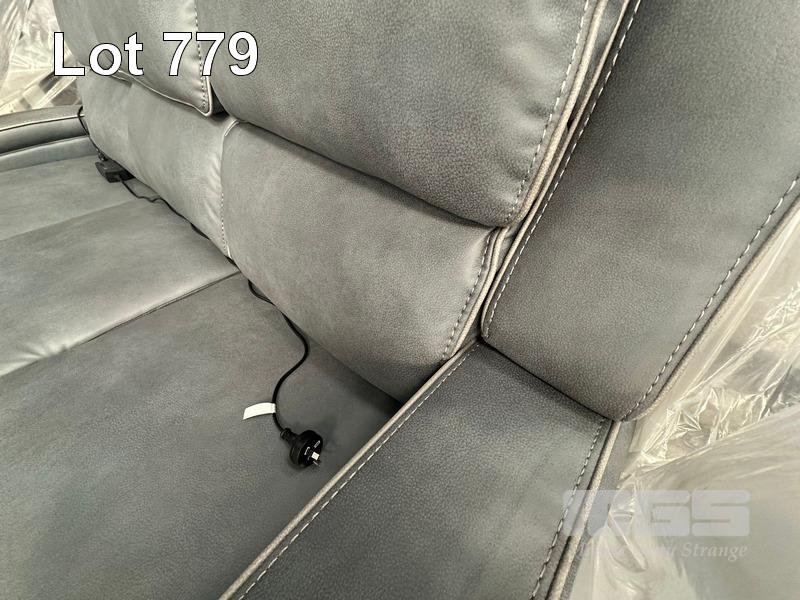 BRADFORD 3-SEATER FABRIC POWERED RECLINER SOFA, STEEL BLUE (RRP $4,299) (SUBJECT TO INSURANCE CLAIM)