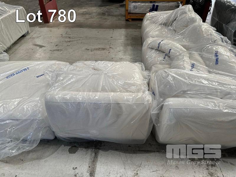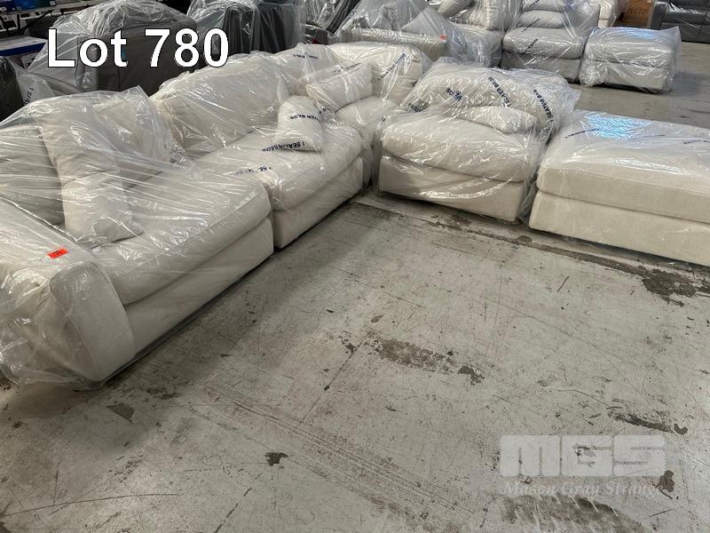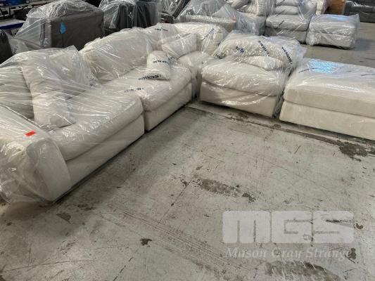 PORTIA 4 SEATER + OTTOMAN CORNER LOUNGE SUITE, BEIGE FABRIC (RRP $4,454) (SUBJECT TO INSURANCE CLAIM)