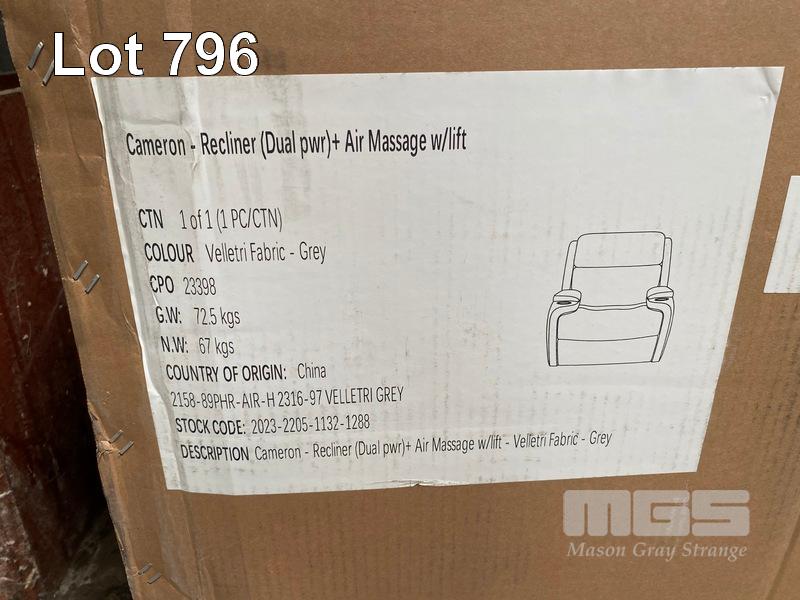 CAMERON FABRIC DUAL MOTOR LIFT CHAIR, GREY WITH AIR MASSAGE (RRP $3,799) (BOXED) (SUBJECT TO INSURANCE CLAIM)