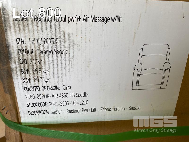 SADLER DUAL MOTOR RECLINER LIFT CHAIR WITH AIR MASSAGE, TERAMO FABRIC (RRP $3,799) (BOXED) (SUBJECT TO INSURANCE CLAIM)