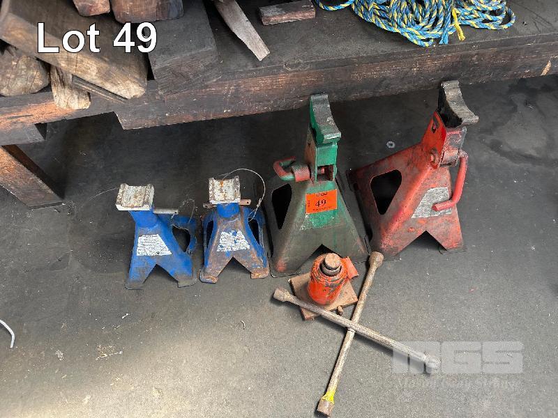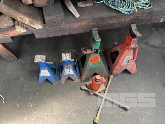 2 x PAIR JACK STANDS, BOTTLE JACK & TYRE LEVER